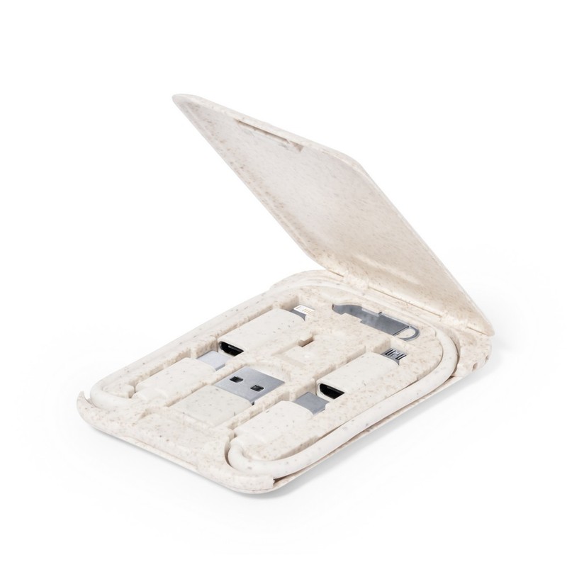 Kabel do ładowania i synchronizacji ze słomy pszenicznej, 3 adaptery w komplecie, stojak na telefon V1358-00