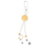 Kabel do ładowania z włókien słomy pszenicznej i bawełny z karabińczykiem, 4 końcówki: USB, 2x USB-C oraz końcówką 2 w 1 (micro USB oraz kompatybilną z urządzeniami iOS), 5V/2.4A, bambusowy element