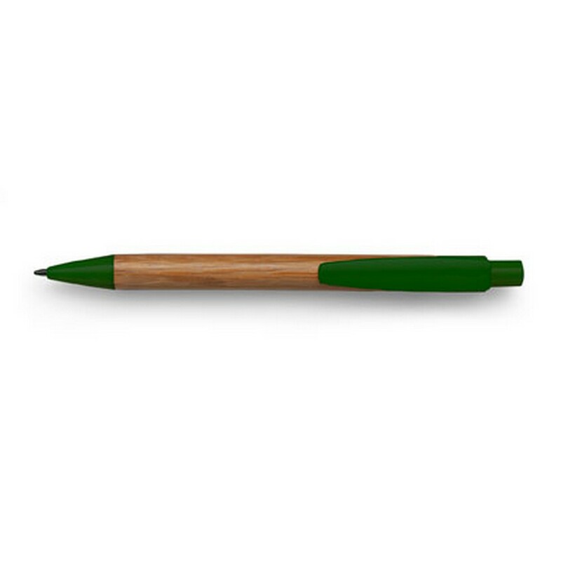 Długopis z bambusowym trzonem i plastikowymi kolorowymi elementami