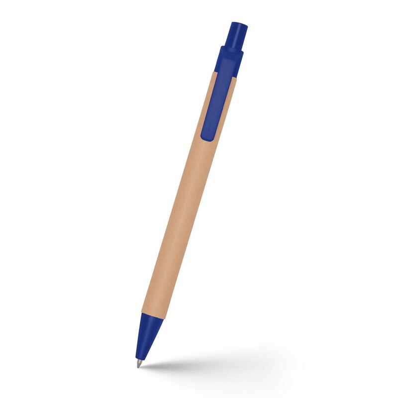 Długopis z kolorowymi elementami, wkład w niebieskim kolorze, trzon wykonany z kartonu z recyklingu