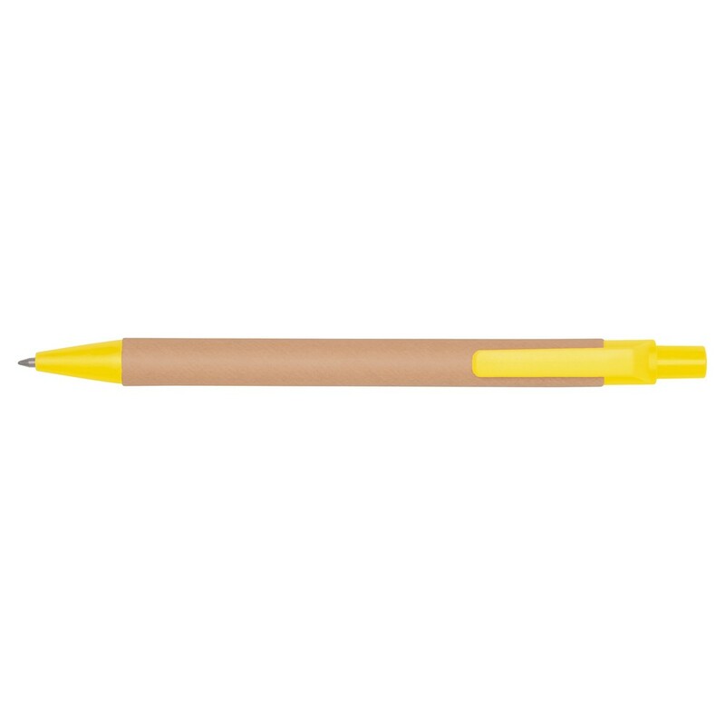 Długopis z kolorowymi elementami, wkład w niebieskim kolorze, trzon wykonany z kartonu z recyklingu