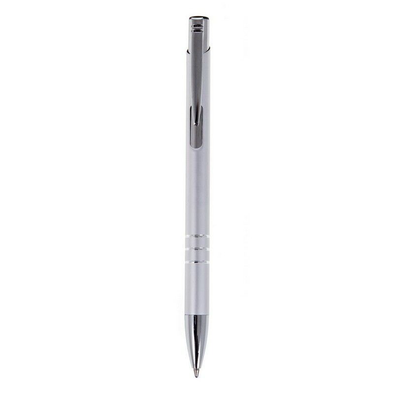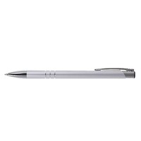 Długopis z kolorowym trzonem o błyszczącym wykończeniu, posiada elementy w srebrnym kolorze, wkład w niebieskim kolorze, produkt wykonany z aluminium