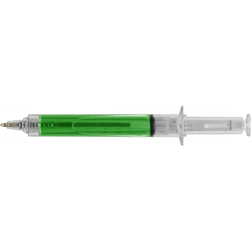 Długopis "strzykawka" z kolorowym płynem, posiada nadrukowaną skalę ml, wkład w czarnym kolorze, produkt wykonany z AS