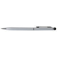 Długopis z kolorowym trzonem i elementami w srebrnym kolorze, niewielka średnica nadaje nowoczesnego wyglądu, końcówka touch pen umożliwiająca obsługę ekranów dotykowych, wkład w niebieskim kolorze, produkt wykonany z aluminium