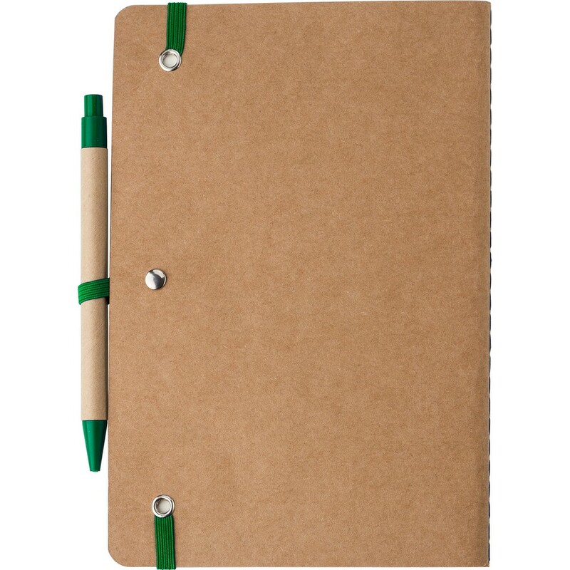Notatnik A5 z tektury pochodzącej z recyklingu (120 pustych stron), elastyczna opaska do zamykania, dołączony długopis ze słomy pszenicznej
