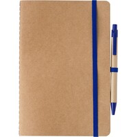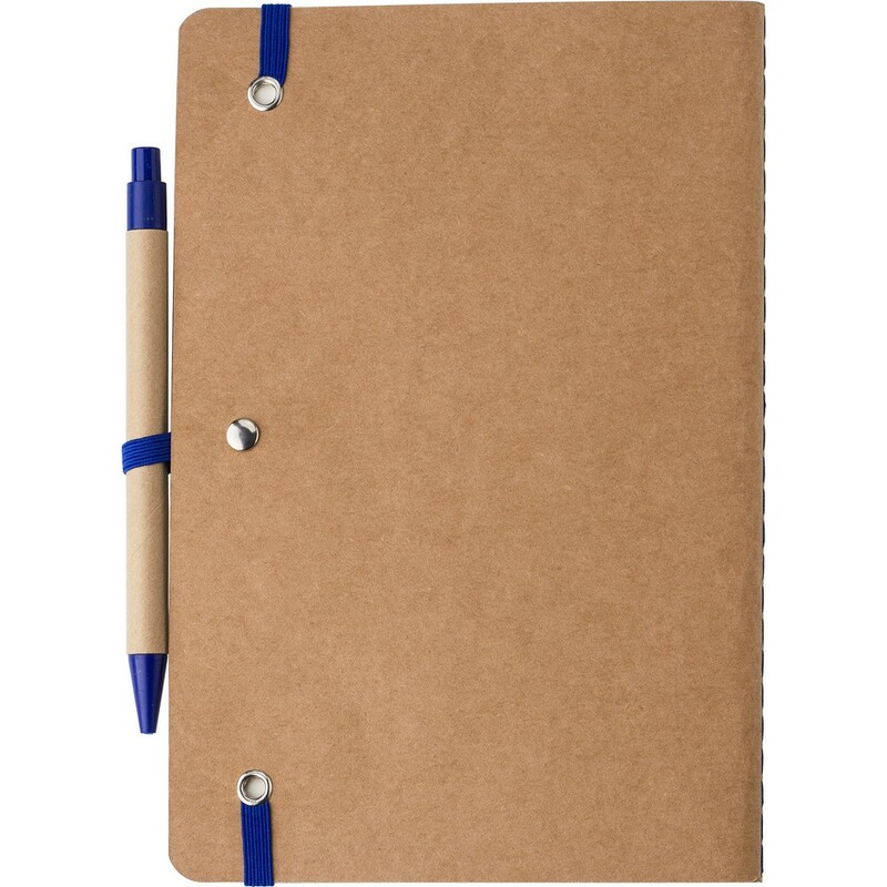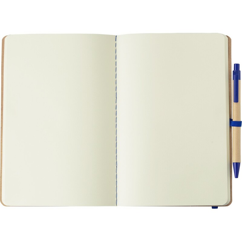 Notatnik A5 z tektury pochodzącej z recyklingu (120 pustych stron), elastyczna opaska do zamykania, dołączony długopis ze słomy pszenicznej