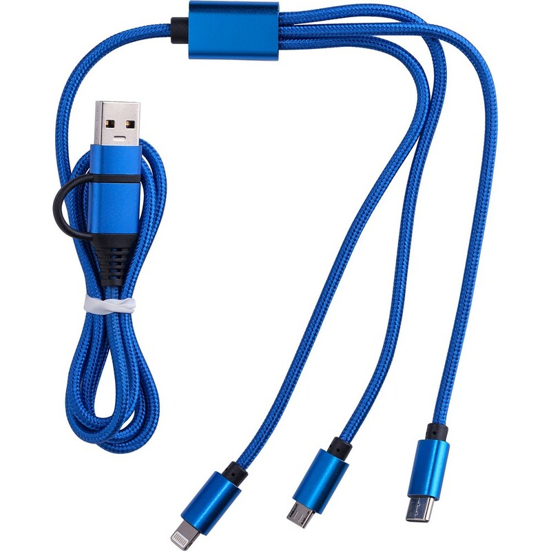 Kabel do ładowania z 4 końcówkami: USB, USB C, micro USB oraz końcówką kompatybilną z urządzeniami iOS