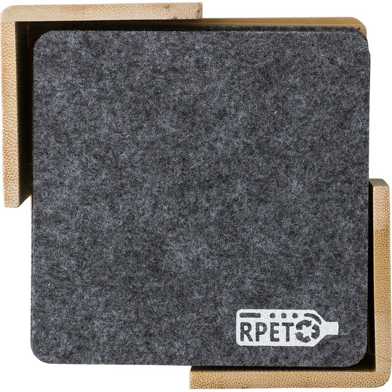 Zestaw filcowych podkładek RPET, 10 szt., w bambusowym etui