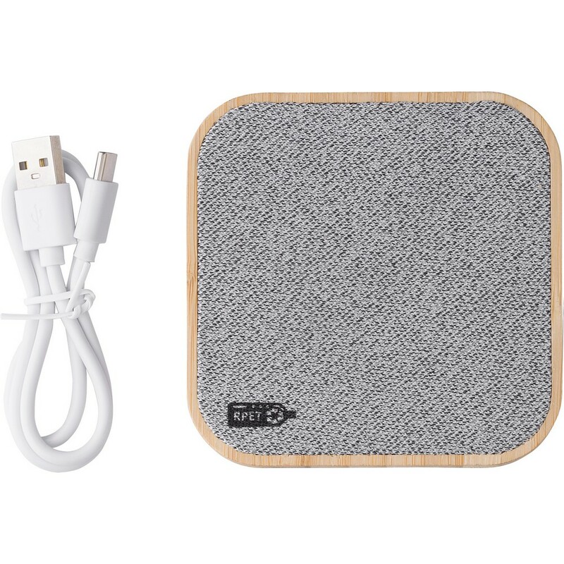 Ładowarka bezprzewodowa 15W, wykonana z RPET i bambusa, bezprzewodowe ładowanie jest kompatybilne ze wszystkimi urządzeniami posiadającymi możliwość ładowania indukcyjnego
