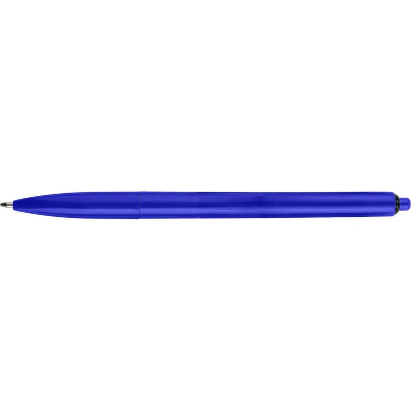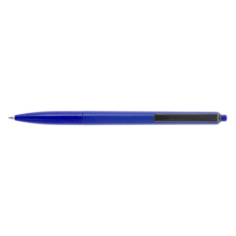 Długopis z kolorowym trzonem i czarnym klipem, wkład w niebieskim kolorze, produkt wykonany z plastiku