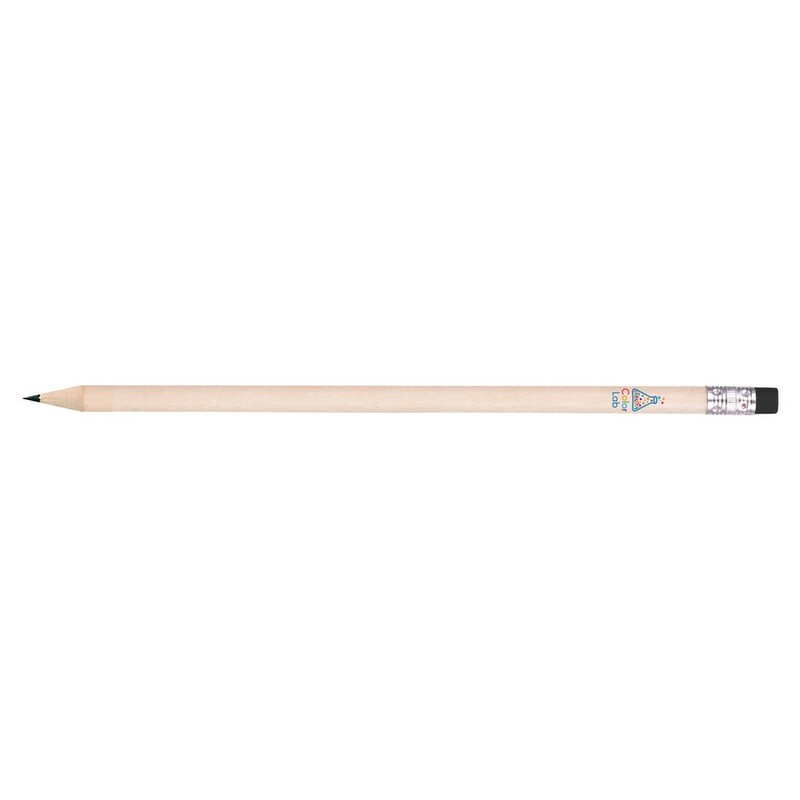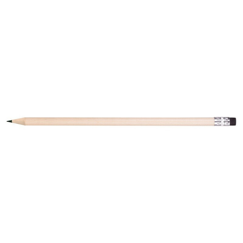 Ołówek z gumką, posiada naostrzoną końcówkę, produkt wykonany z drewna
