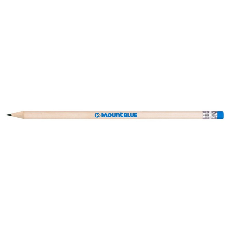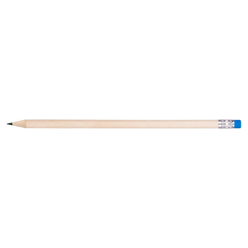 Ołówek z gumką, posiada naostrzoną końcówkę, produkt wykonany z drewna