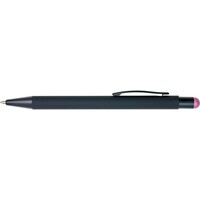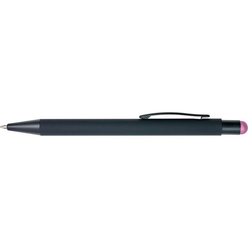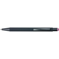 Długopis, touch pen z gumowanym wykończeniem, grawer ukazuje powierzchnię w kolorze zbliżonym do koloru gumowej końcówki lub w kolorze białym