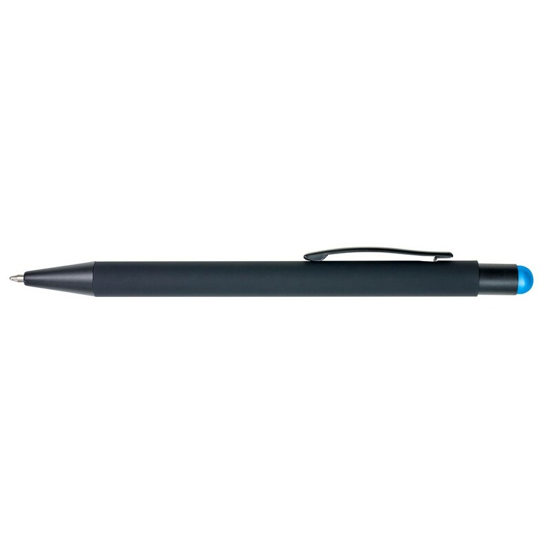 Długopis, touch pen z gumowanym wykończeniem, grawer ukazuje powierzchnię w kolorze zbliżonym do koloru gumowej końcówki lub w kolorze białym
