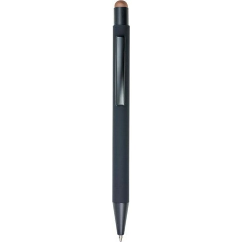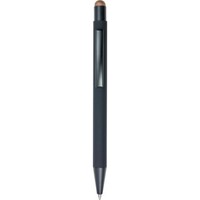 Długopis, touch pen z gumowanym wykończeniem, grawer ukazuje powierzchnię w kolorze zbliżonym do koloru gumowej końcówki lub w kolorze białym