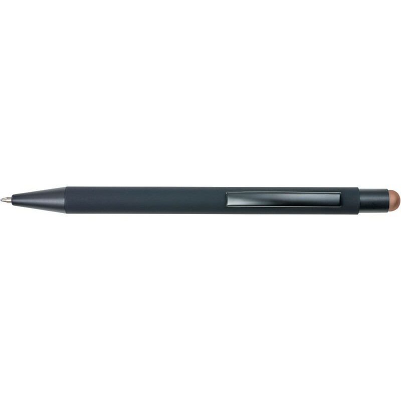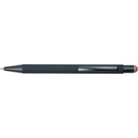 Długopis, touch pen z gumowanym wykończeniem, grawer ukazuje powierzchnię w kolorze zbliżonym do koloru gumowej końcówki lub w kolorze białym