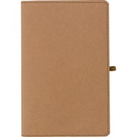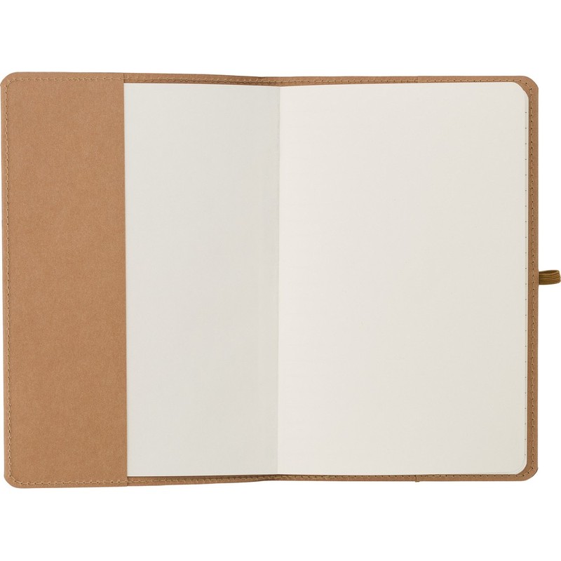 Notatnik (ok. A5, 96 kartek w linie), miękka okładka, przeszycia na brzegach okładki, miejsce na przybory do pisania (nie dołączone)