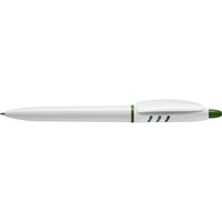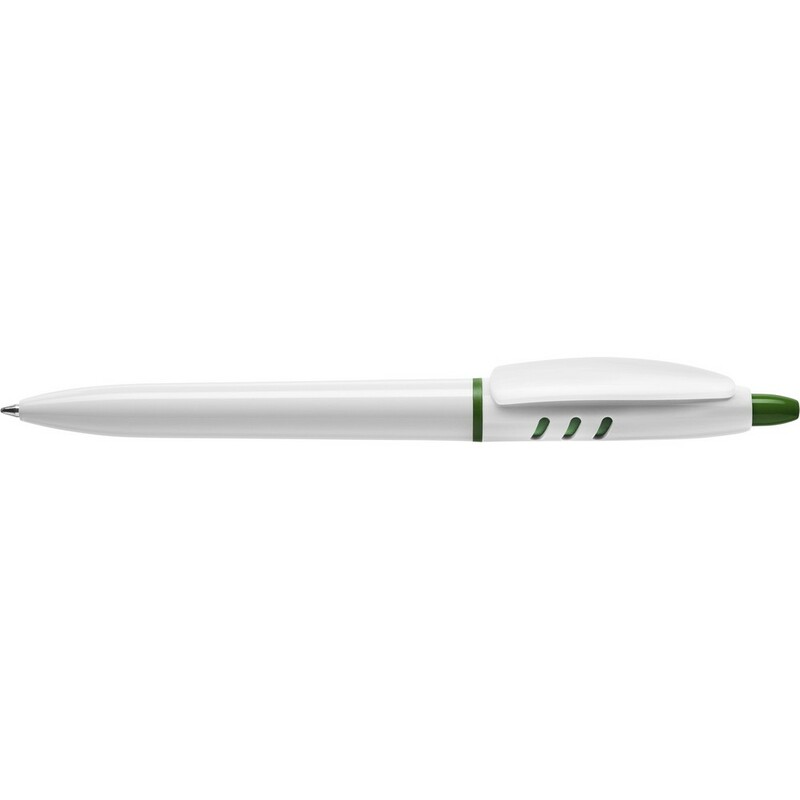 Długopis Stilolinea S30, biały trzon, kolorowe akcenty, wkład w niebieskim kolorze, zawiera tusz German Dokumental Ink, produkt wykonany z ABS, plastiku, niklu i metalu