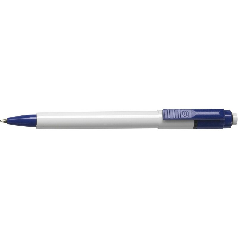 Długopis Stilolinea Baron z wkładem jumbo, biały trzon, kolorowy klips, wkład w niebieskim kolorze, zawiera tusz German Dokumental Ink, produkt wykonany z ABS, plastiku i metalu