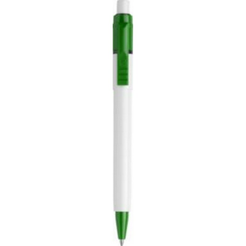 Długopis Stilolinea Baron z wkładem jumbo, biały trzon, kolorowy klips, wkład w niebieskim kolorze, zawiera tusz German Dokumental Ink, produkt wykonany z ABS, plastiku i metalu