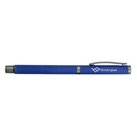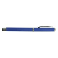 Zestaw piśmienniczy, długopis oraz pióro kulkowe z kolorowym trzonem i szarymi elementami, długopis klikany, piórko kulkowe ze skuwką, posiadają gumowe wykończenie, wkłady w niebieskim kolorze, dopasowane kolorystycznie pudełko podarunkowe w komplecie, produkt wykonany z aluminium i plastiku