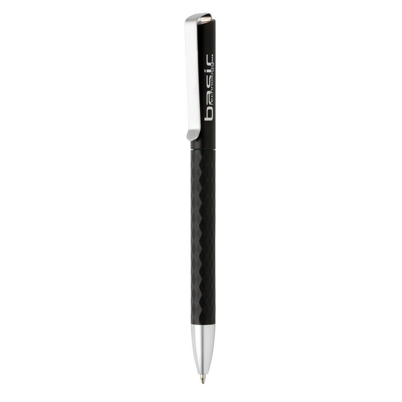 Długopis z metalowym klipem, diamentowy wzór na trzonie, niemiecki wkład Dokumental® w kolorze niebieskim w komplecie, długość pisania ok. 1200 m, kulka TC zapewnia wygodne pisanie