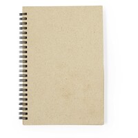 Notatnik (ok. A5, 80 kartek w linie), wykonany z papieru z trawy, twarda okładka, spiralne bindowanie