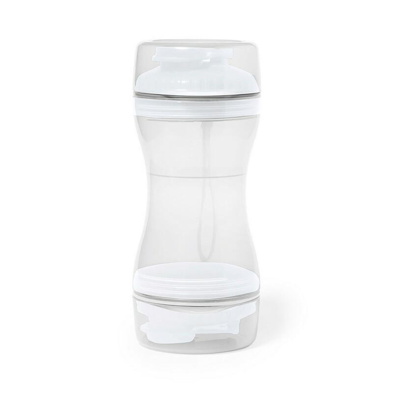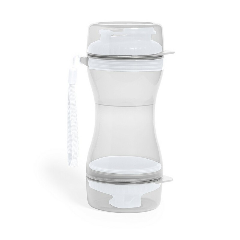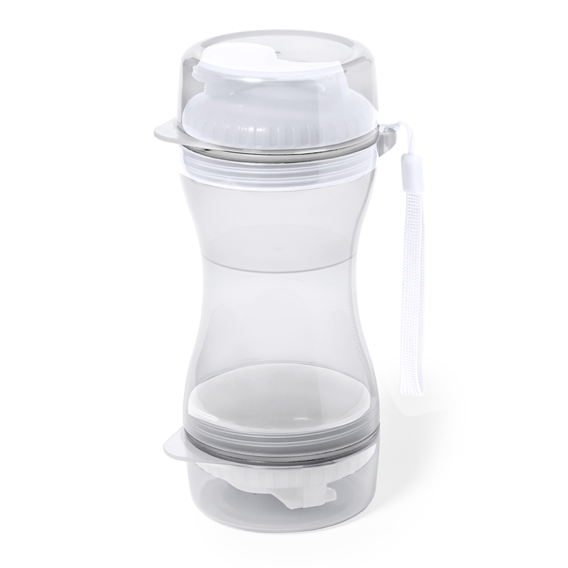 Zestaw podróżny dla psa, przegroda 280 ml na wodę z dozownikiem, przegroda 330 ml na jedzenie dla psa, pasek na rękę, 2 wieczka mogące służyć jako miski dla psa w komplecie