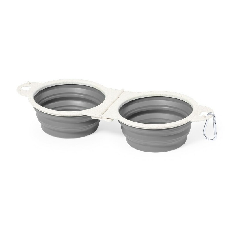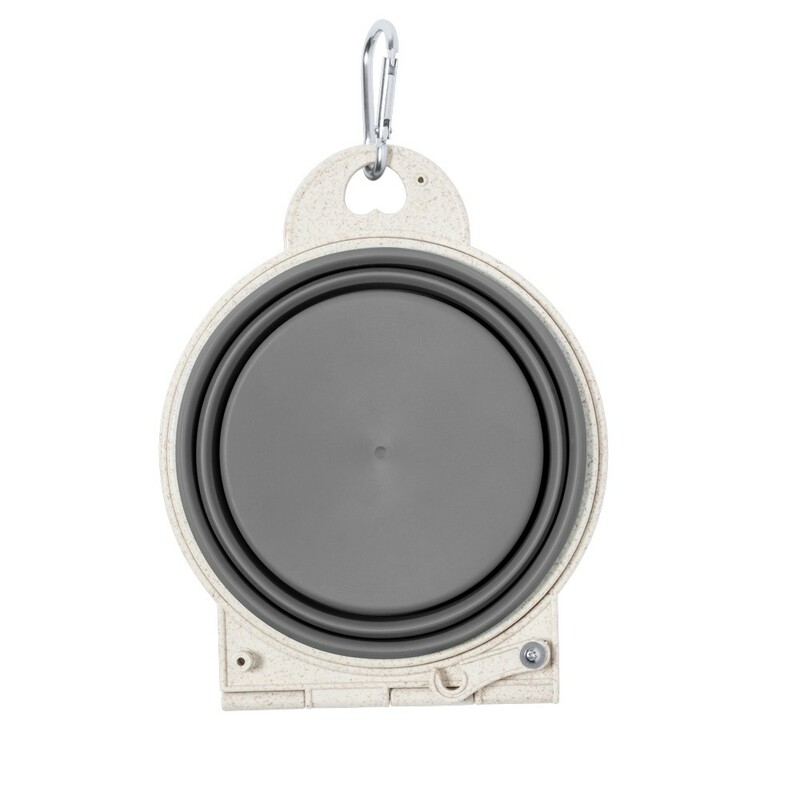 Podwójna miska dla psa z elementami z włókien słomy pszenicznej, składana, karabińczyk w komplecie