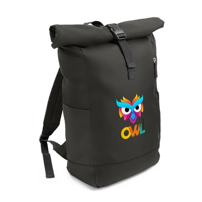 Plecak z przednią kieszenią i główną przegrodą na zamek błyskawiczny, wykonany z RPET, zgodny z certyfikatem GRS (Global RecycIed Standard), 2 kieszenie boczne, rozwijalna główna kieszeń zamykana na klamrę, która umożliwia zwiększanie pojemności plecaka oraz lepiej chroni przed czynnikami atmosferycznymi po zwinięciu, regulowane paski na ramię