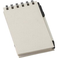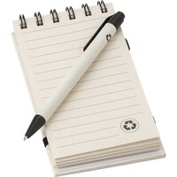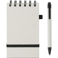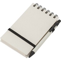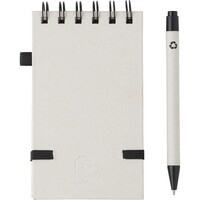Notatnik A6 z kartonu po mleku, 70 kartek, elastyczna opaska do zamykania, długopis z niebieskim wkładem