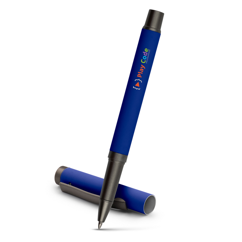 Długopis z gumowanym wykończeniem i dopasowaną kolorystycznie zatyczką z szarym klipem, żelowy wkład 0.7 mm, długość pisania do 500 m