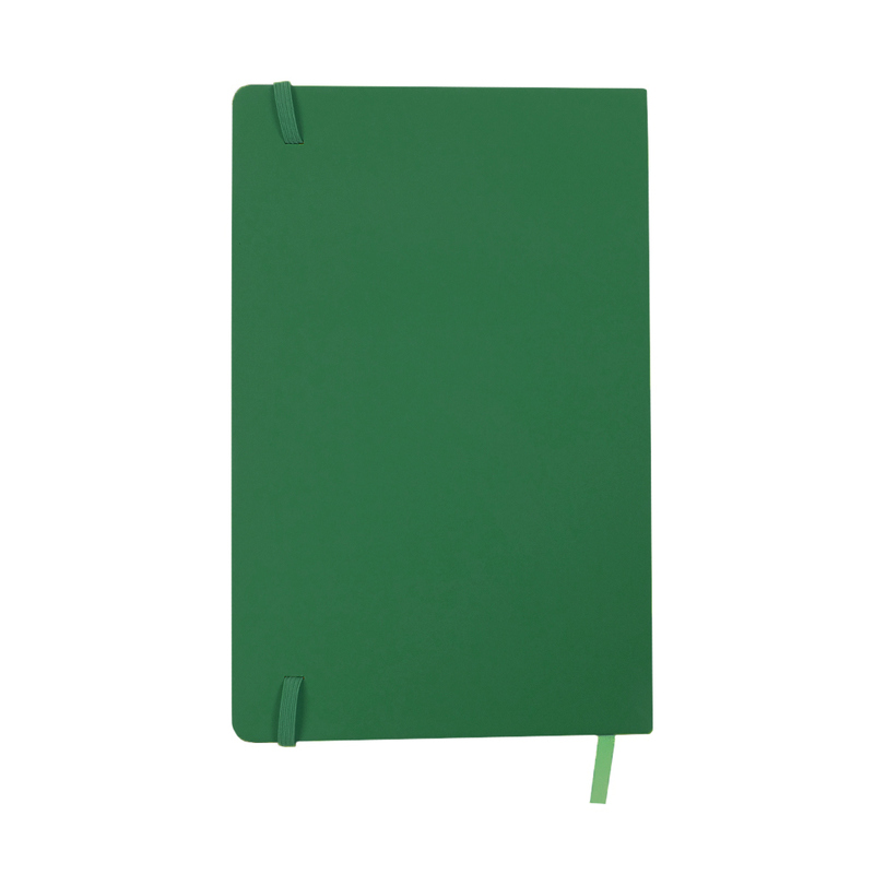 Notatnik w formacie ok. A5, posiada 96 kartek w linie (192 strony), tasiemka zakładkowa umożliwia wygodne zaznaczanie ostatniej strony lub ważniejszych notatek, dodatkowe zamknięcie w postaci dopasowanej kolorystycznie elastycznej opaski, twarda okładka wykonana z PU