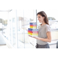 Notatnik w formacie ok. A5, posiada 96 kartek w linie (192 strony), tasiemka zakładkowa umożliwia wygodne zaznaczanie ostatniej strony lub ważniejszych notatek, dodatkowe zamknięcie w postaci dopasowanej kolorystycznie elastycznej opaski, twarda okładka wykonana z PU