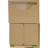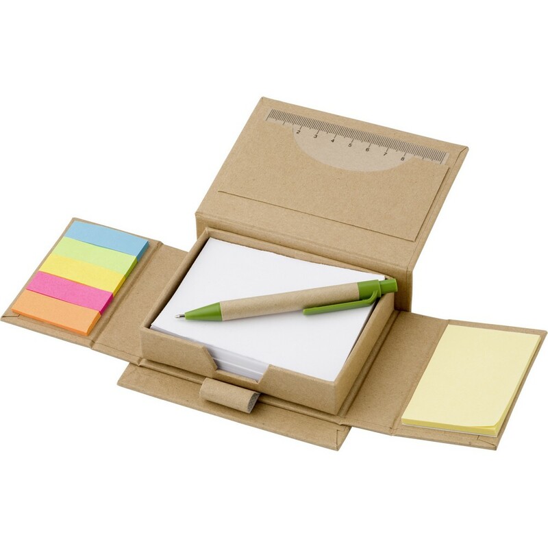 Zestaw do notatek, 150 karteczek samoprzylepnych, 160 pustych kartek oraz długopis w etui, linijka na pokrywce i kieszonka na wizytówki