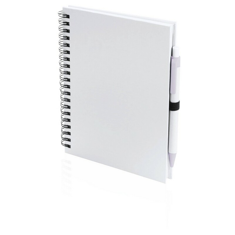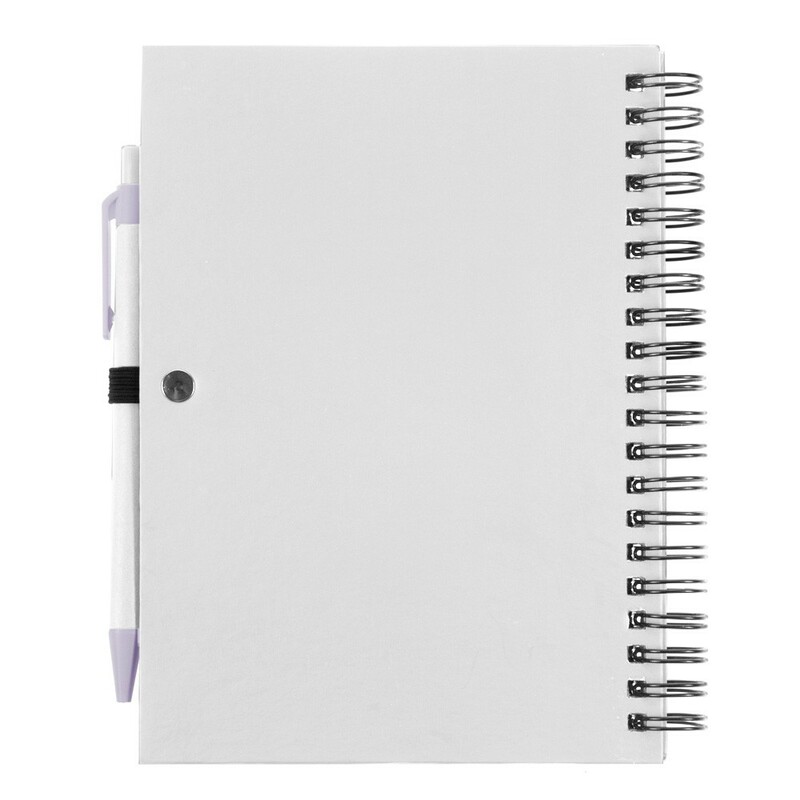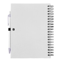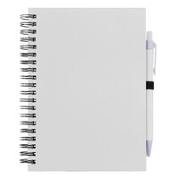 Notatnik (ok. A5, 70 pustych kartek) z okładką z kartonu z recyklingu i dopasowanym kolorystycznie długopisem z trzonem z kartonu z recyklingu, twarda okładka, spiralne bindowanie