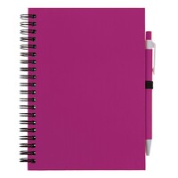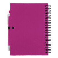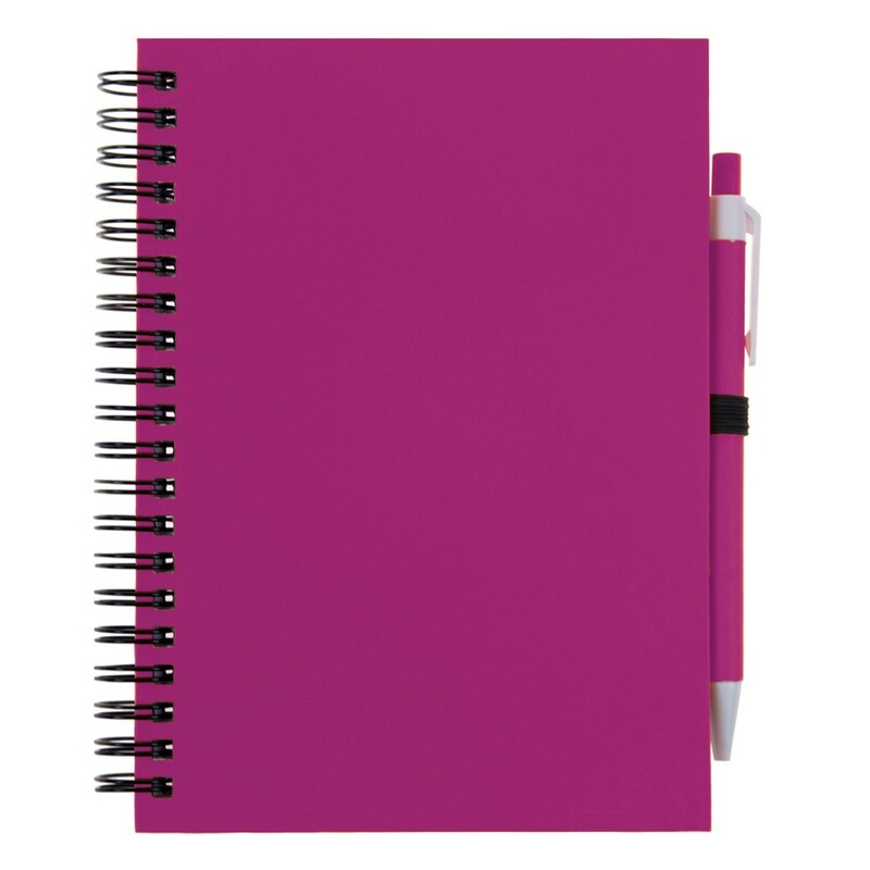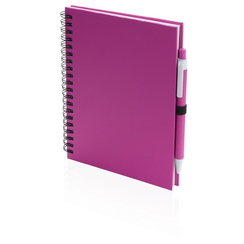 Notatnik (ok. A5, 70 pustych kartek) z okładką z kartonu z recyklingu i dopasowanym kolorystycznie długopisem z trzonem z kartonu z recyklingu, twarda okładka, spiralne bindowanie