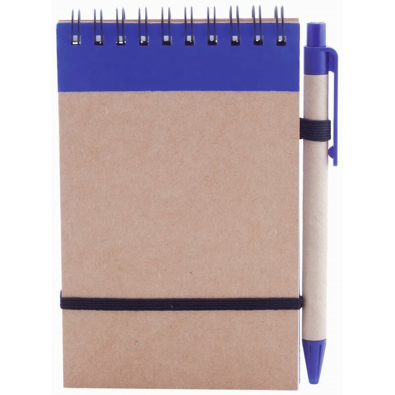 Notatnik (ok. A6, 70 kartek w linie) z długopisem, elastyczna opaska do zamykania, twarda okładka, spiralne bindowanie
