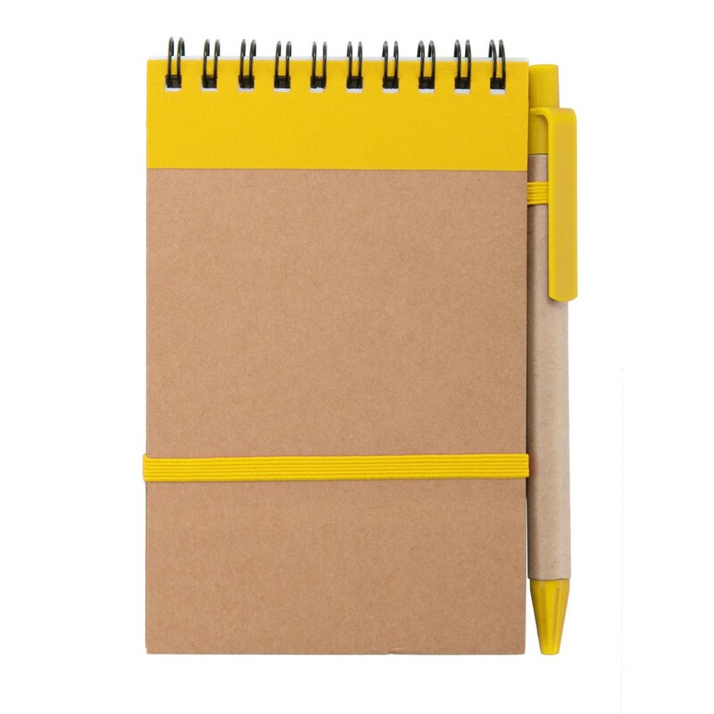 Notatnik (ok. A6, 70 kartek w linie) z długopisem, elastyczna opaska do zamykania, twarda okładka, spiralne bindowanie