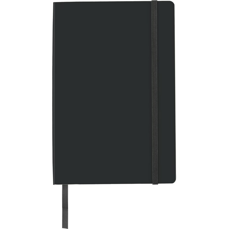 Notatnik ok. A5 (80 kartek w linie), miękka okładka, tasiemka zakładkowa i elastyczna opaska do zamykania