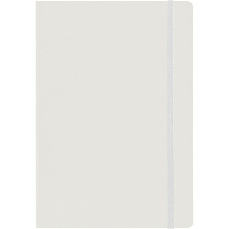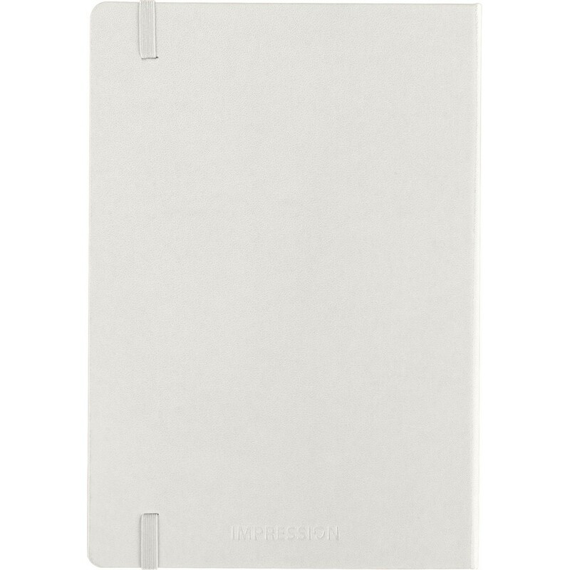 Notatnik (ok. A5, 128 kartek w linie), papierowa kieszeń na wewnętrznej stronie tylnej okładki, elastyczna opaska do zamykania i tasiemka zakładkowa, tylna okładka z logo IMPRESSION