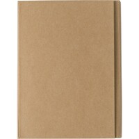 Teczka konferencyjna, notatnik (40 kartek w linie), bambusowa linijka (15 cm), papierowy długopis z plastikowymi elementami korpusu, 2 ołówki, temperówka, gumka do mazania, 125 karteczek samoprzylepnych (25 szt. z każdego koloru), notatnik samoprzylepny i kieszeń wewnętrzna
