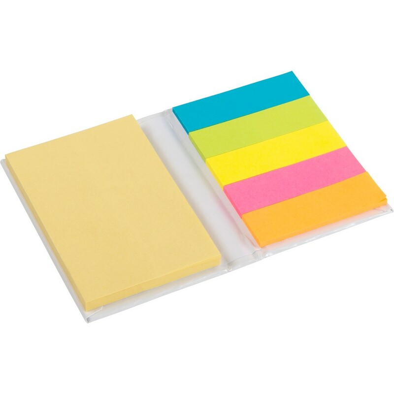 Zestaw do notatek, twarda okładka, żółty notes samoprzylepny (50 kartek) i karteczki samoprzylepne w 5 kolorach (25 szt. z każdego koloru)