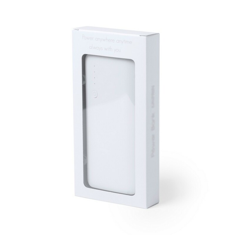 Power bank 10000 mAh, możliwość ładowania trzech urządzeń jednocześnie, 4 diody wskazujące poziom naładowania, 1 lampka LED, 3 wyjścia USB 5V/2.1A, wejście micro USB 5V/2.1A, kabel nie jest dołączony
