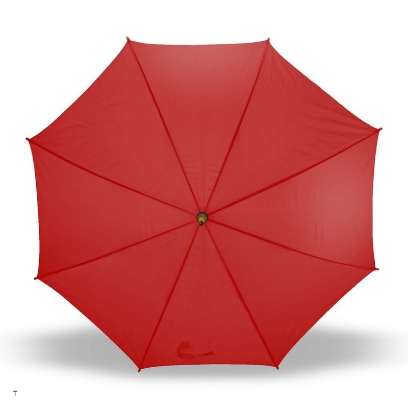 Parasol automatyczny 23", posiada 8 paneli oraz zapięcie na rzep, drewniany trzon i rączka, produkt wykonany z poliestru 190T