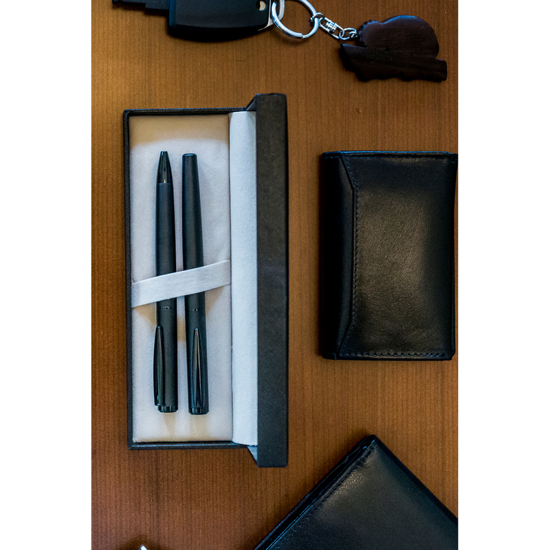 Zestaw piśmienniczy Mauro Conti, długopis i pióro kulkowe z czarnymi elementami, w ozdobnym pudełku