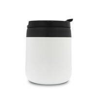 Kubek termiczny 400 ml z rączką, posiada podwójne ścianki ze stali nierdzewnej z próżnią między ściankami, co spowalnia oddawanie temperatury na zewnątrz, zachowując funkcje termosu, plastikowe wieczko z zamknięciem umożliwiającym obsługę jedną ręką, matowe wykończenie, utrzymuje temperaturę napojów gorących do 10 godzin