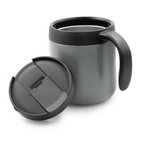 Kubek termiczny 400 ml z rączką, podwójne ścianki ze stali nierdzewnej z próżnią między ściankami, plastikowe wieczko, nie wymaga obsługi oburącz, matowe wykończenie, klasa termiczna: 2