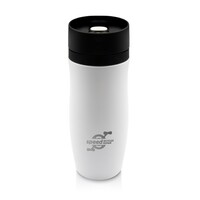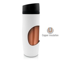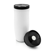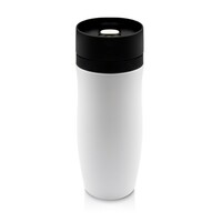 Kubek termiczny 375 ml Air Gifts, posiada podwójne ścianki ze stali nierdzewnej z miedzianą izolacją próżniową, co spowalnia oddawanie temperatury na zewnątrz, zachowując funkcje termosu, plastikowe wieczko z przyciskiem otwarcia/zamknięcia ustnika umożliwiającym obsługę jedną ręką, matowe wykończenie, utrzymuje temperaturę napojów gorących do 15 godzin +leakproof