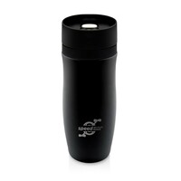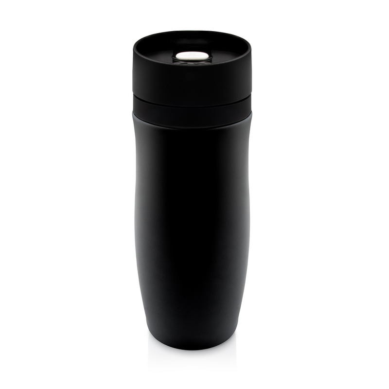 Kubek termiczny 375 ml Air Gifts, posiada podwójne ścianki ze stali nierdzewnej z miedzianą izolacją próżniową, co spowalnia oddawanie temperatury na zewnątrz, zachowując funkcje termosu, plastikowe wieczko z przyciskiem otwarcia/zamknięcia ustnika umożliwiającym obsługę jedną ręką, matowe wykończenie, utrzymuje temperaturę napojów gorących do 15 godzin +leakproof